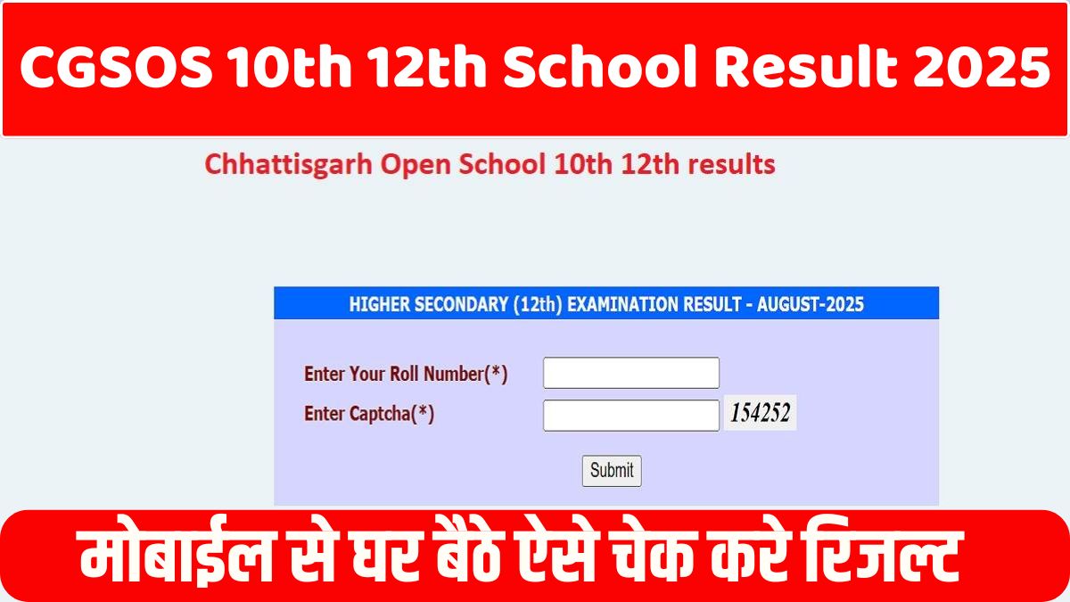 छत्तीसगढ़ ओपन स्कूल रिजल्ट 2025 जारी, रोल नंबर से ऐसे चेक करे रिजल्ट